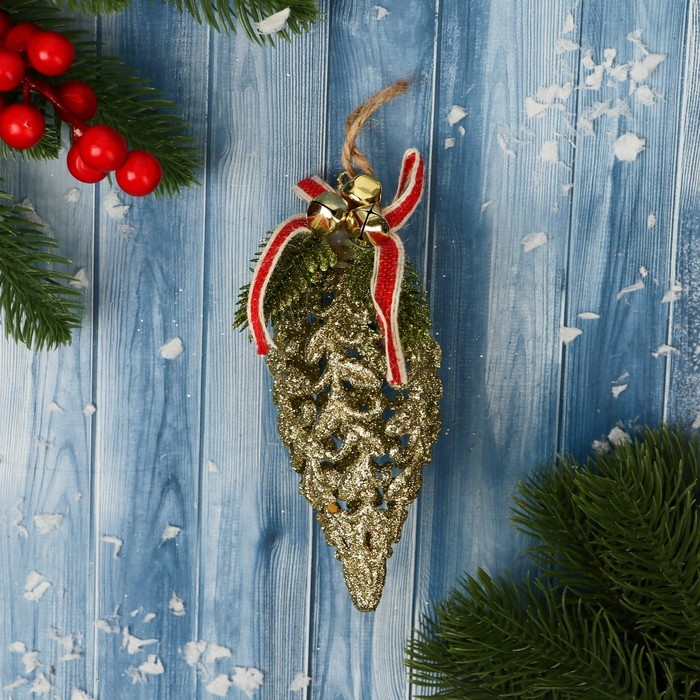 Украшение ёлочное "Сосулька ажур" 7х13 см, золото