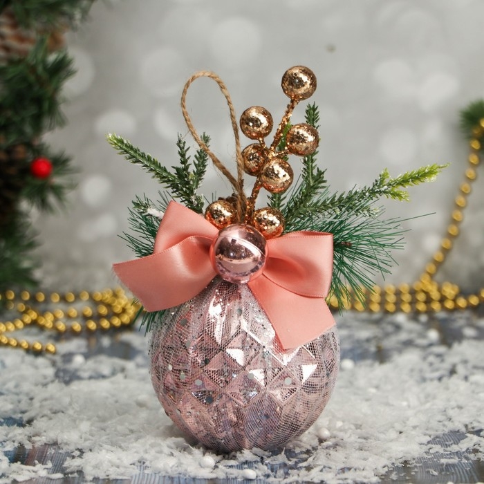 Шар пластик декор "Блеск рождества" грани бант, 8х14 см, розовый