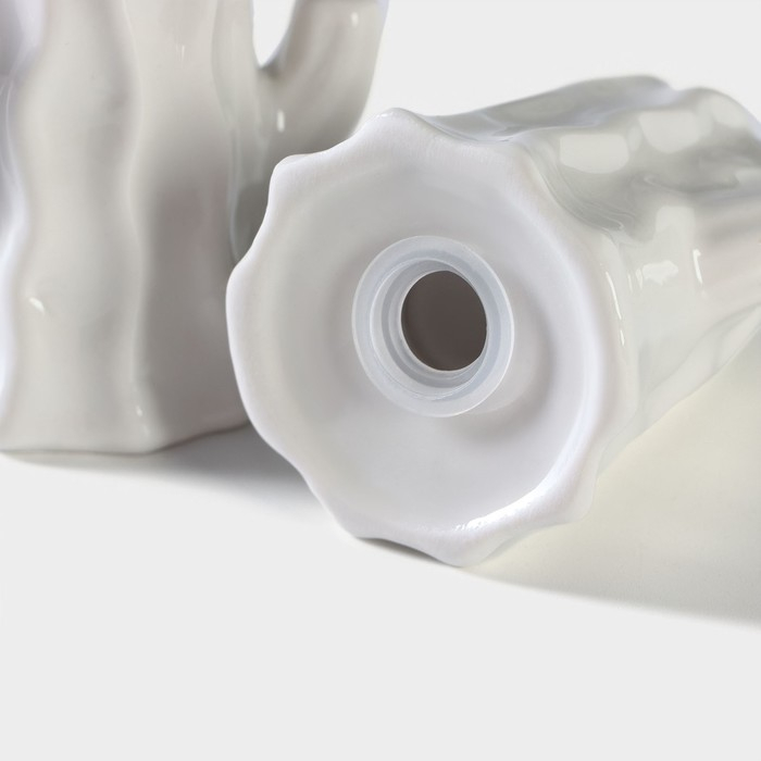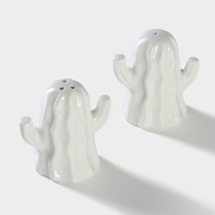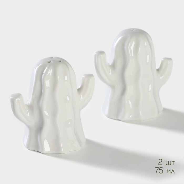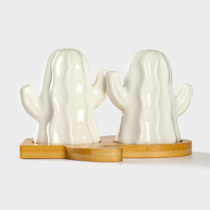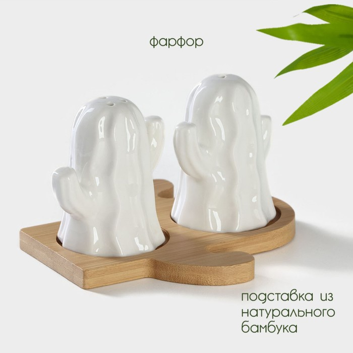 Набор фарфоровый для специй на бамбуковой подставке BellaTenero «Кактусы», 2 предмета: солонка 75 мл, перечница 75 мл, цвет белый