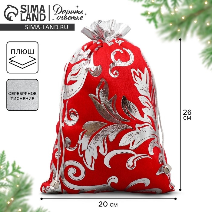 Мешочек подарочный плюш «Дед Мороз», тиснение, 20 х 30 см +/- 1.5 см, Новый год