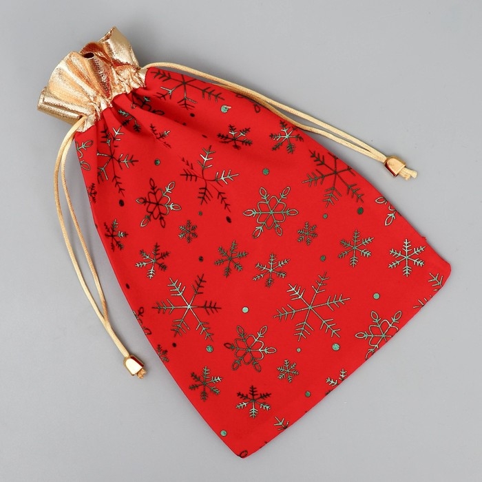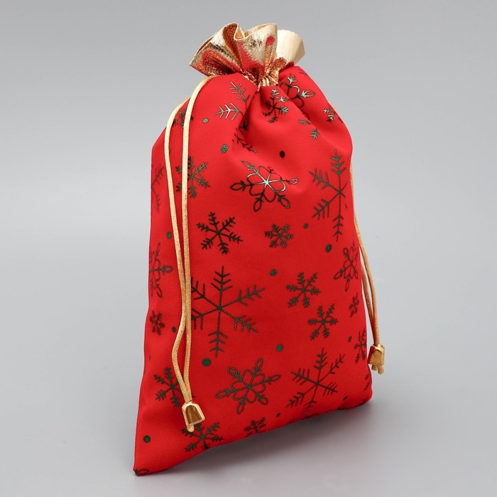 Мешок для подарков «Дед Мороз и снежинки», на завязках, 29 × 22 см