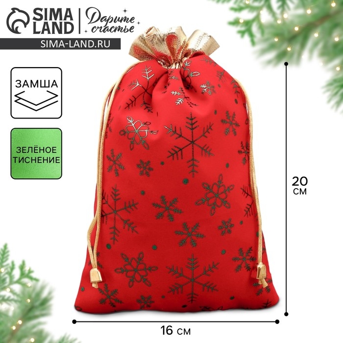 Мешочек подарочный замша «Тепла и Уюта», снежинки, тиснение, 16 х 24 см +/- 1.5 см, Новый год