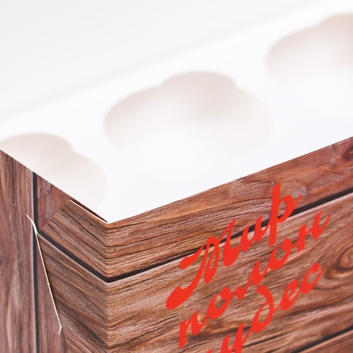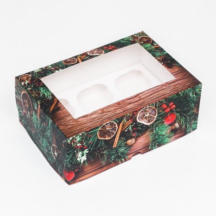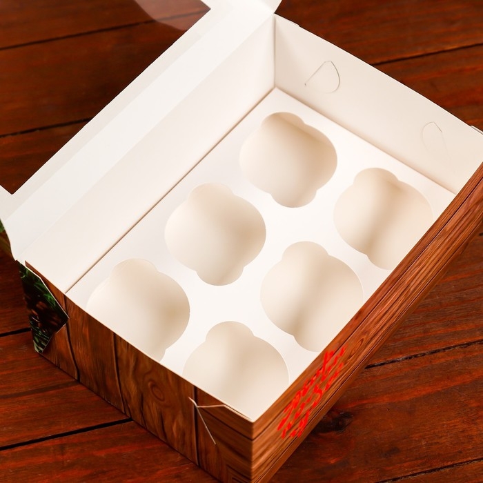 Новый год. Коробка для 6 капкейков с окном "Подарок для тебя", 25 х 17 х 10 см, упаковка