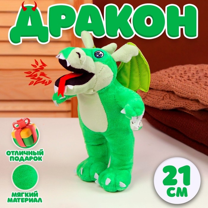Мягкая игрушка «Дракон», в полный рост, 21 см, цвет зелёный