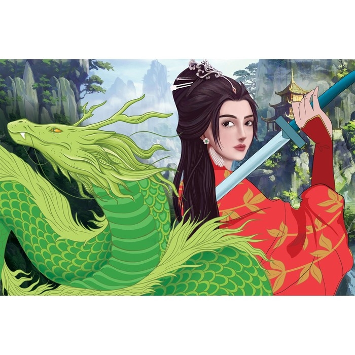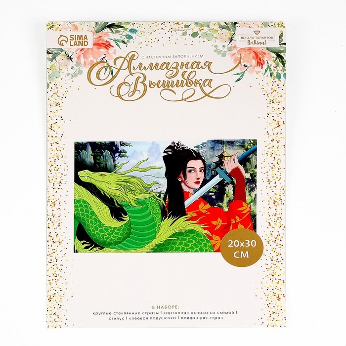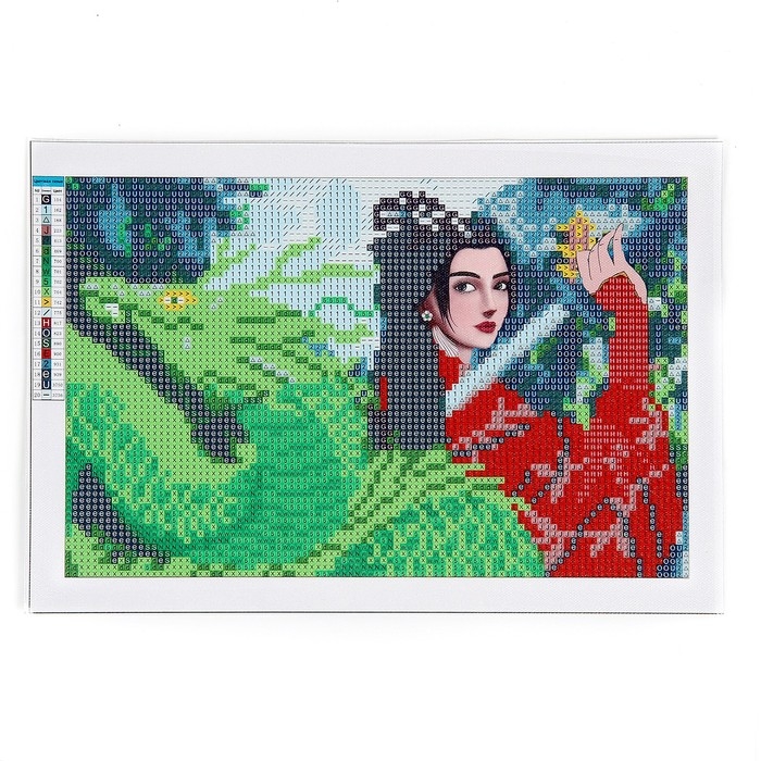 Алмазная мозаика с частичным заполнением на холсте «Девушка с драконом», 20 х 30 см