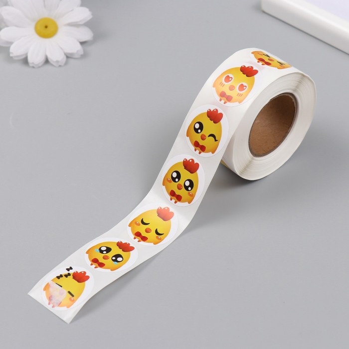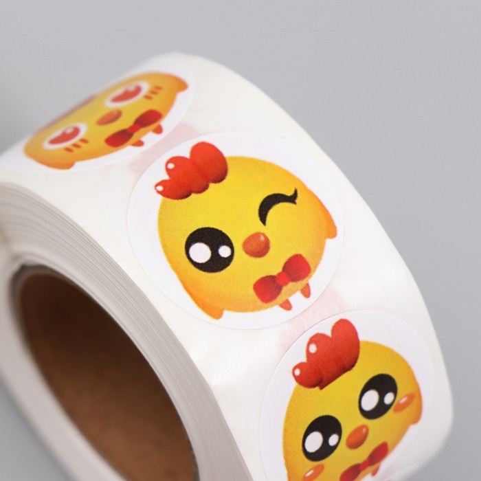 Наклейка бумага "Настроение цыплёнка" d=2,5 см 500 шт в рулоне 3х6,5х6,5 см