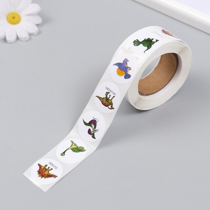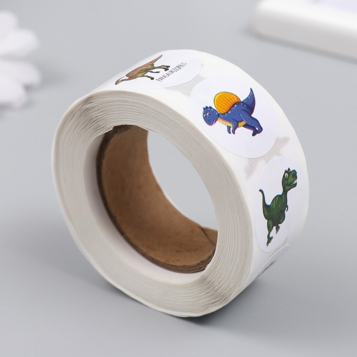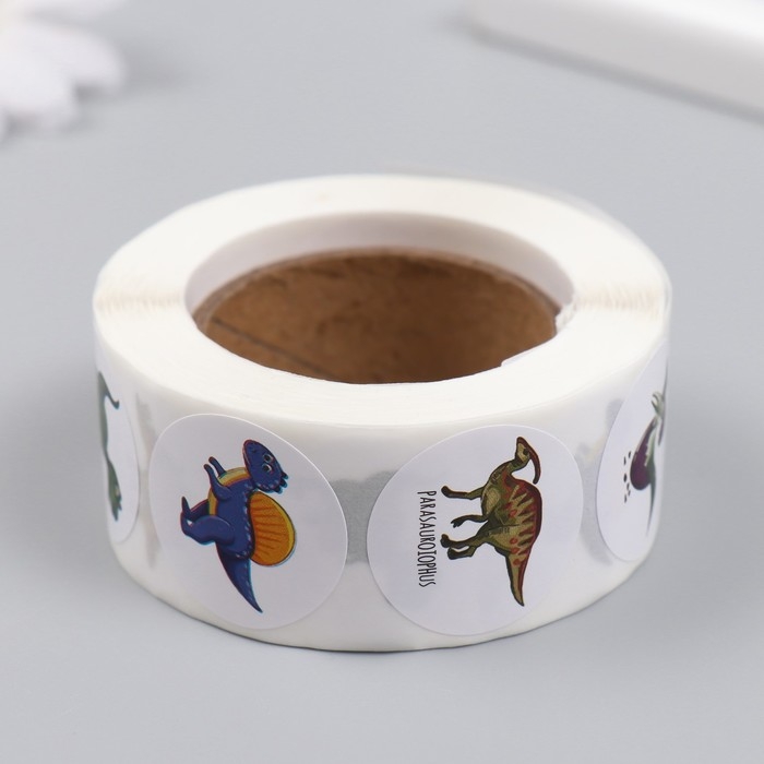 Наклейка бумага "Дино парк" d=2,5 см 500 шт в рулоне