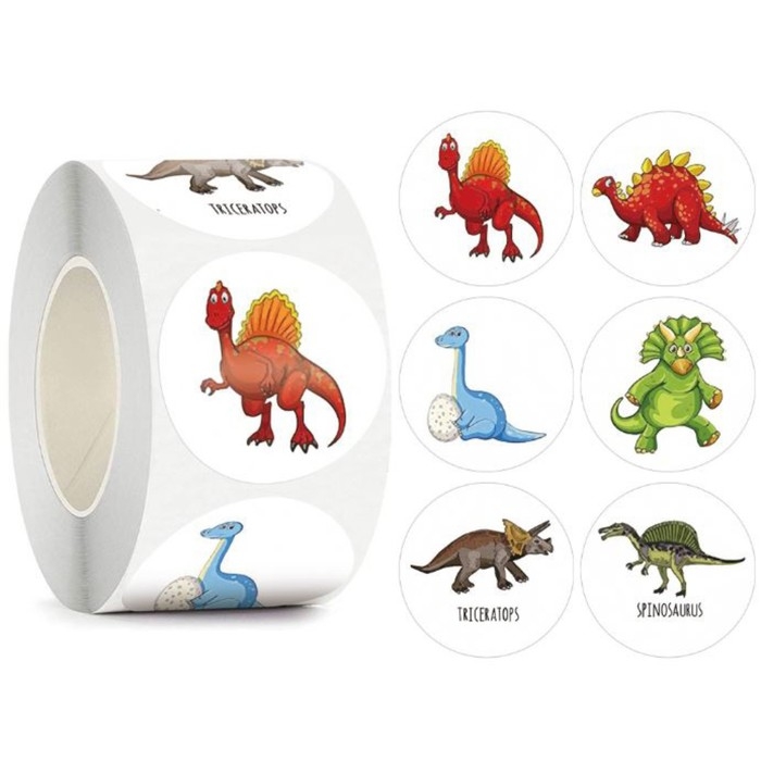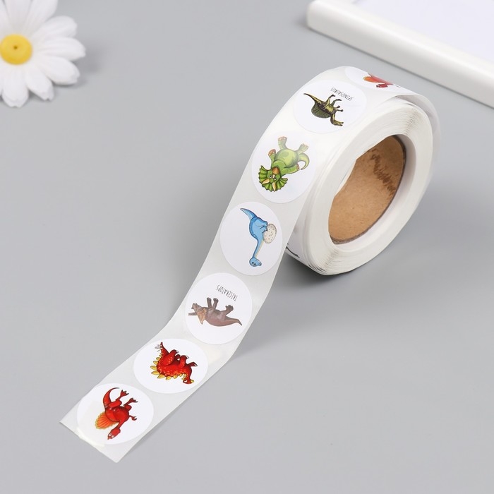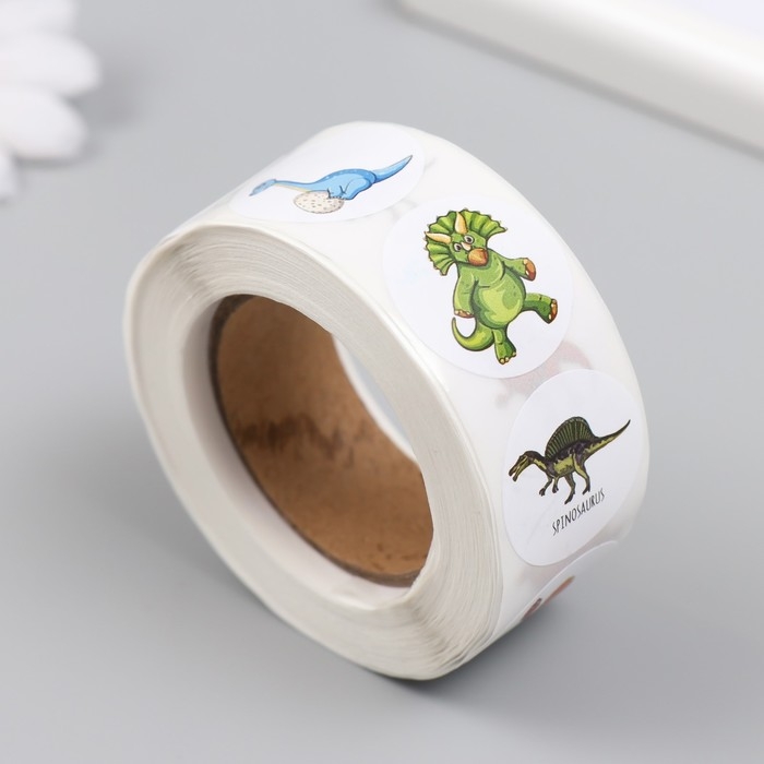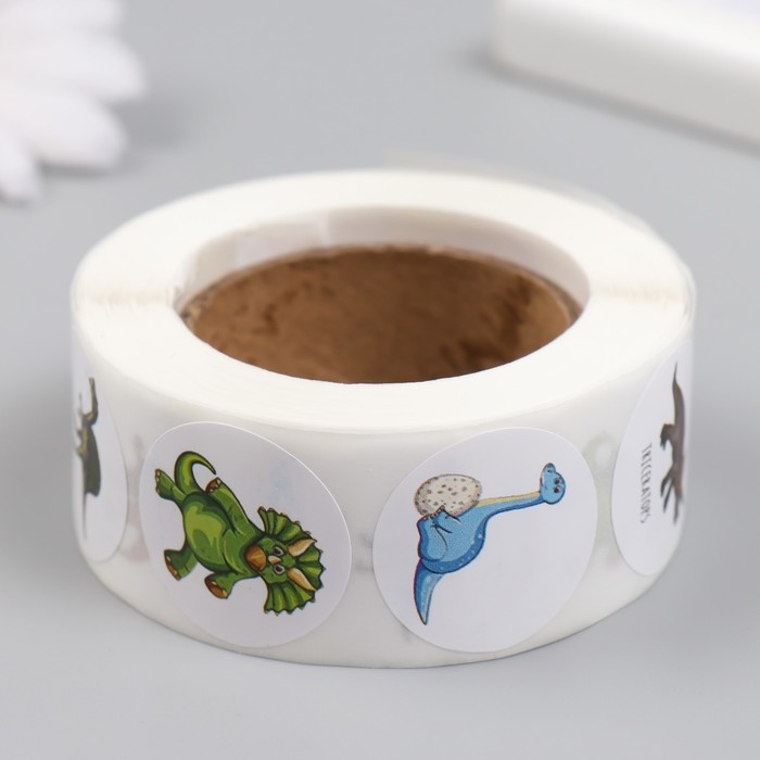 Наклейка бумага "Динозаврики" d=2,5 см 500 шт в рулоне