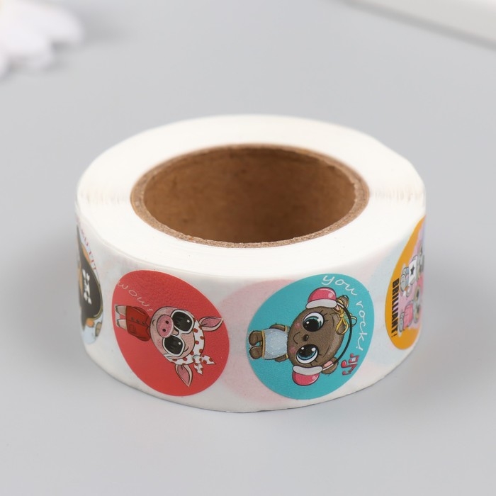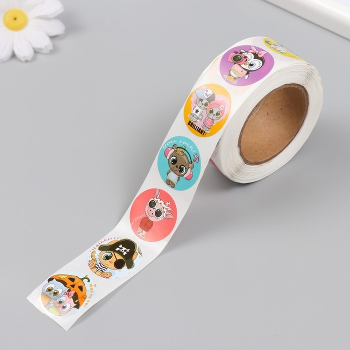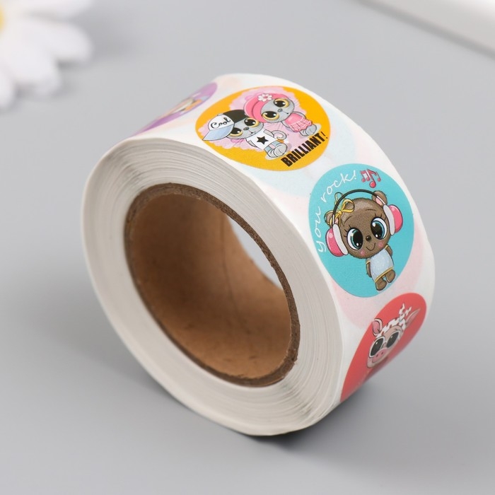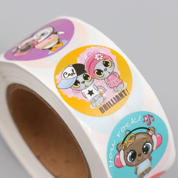 Наклейка бумага "Подбадривающие звери" d=2,5 см 500 шт в рулоне
