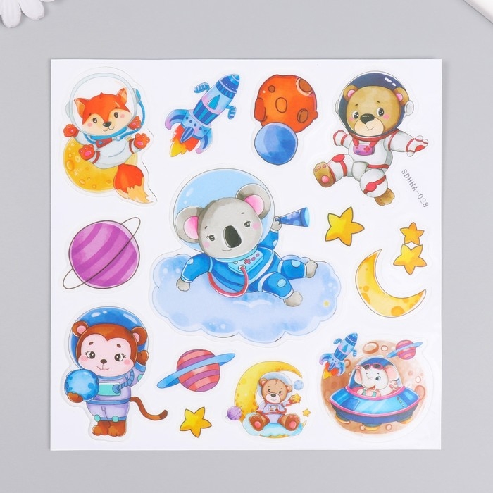 Наклейка пластик интерьерная фосфорная "Звери космонавты" 25х20,5 см