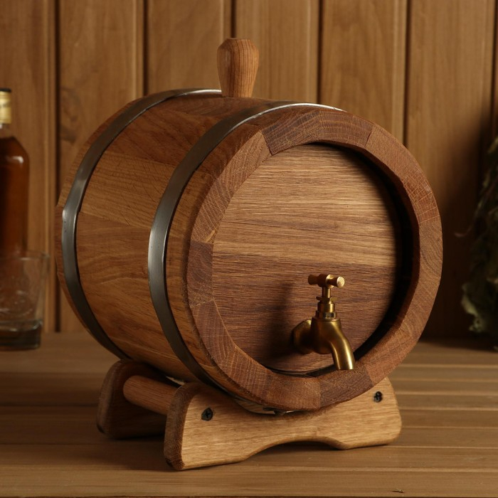 Бочка дубовая на подставке, 5л, кавказский дуб, кран из латуни, покрыта льняным маслом