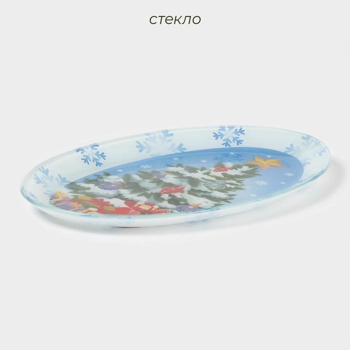 Блюдо стеклянное овальное Доляна «Зимняя сказка», 30×21 см