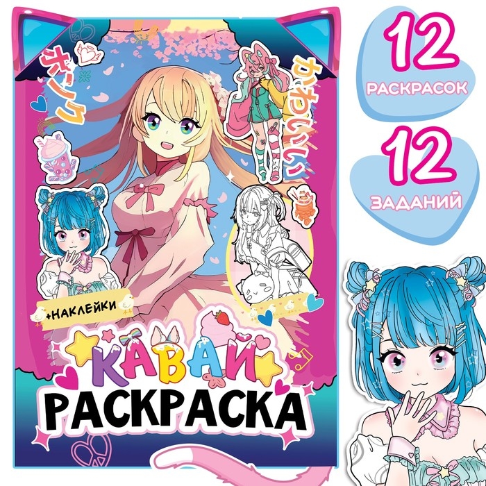 Раскраска с наклейками «Кавай», 12 стр., Аниме