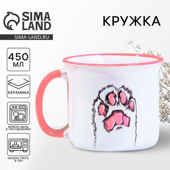 Кружка керамическая «Лапка», 450 мл, цвет белый