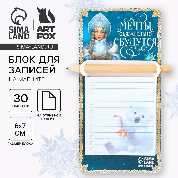 Новый год. Блок для записей с карандашом на магните «Мечты обязательно сбудутся»