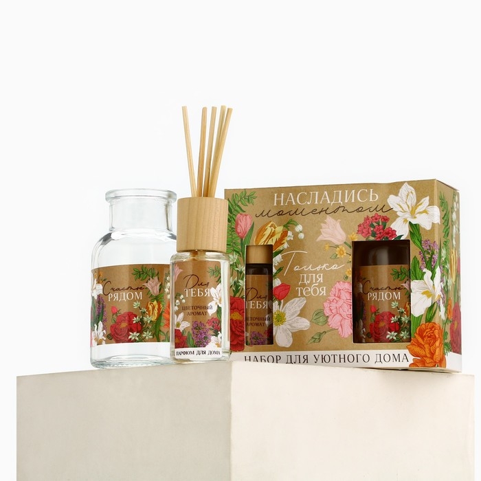 Набор упакован в красивую коробку с цветочным принтом. Это отличный подарок для себя или близких.