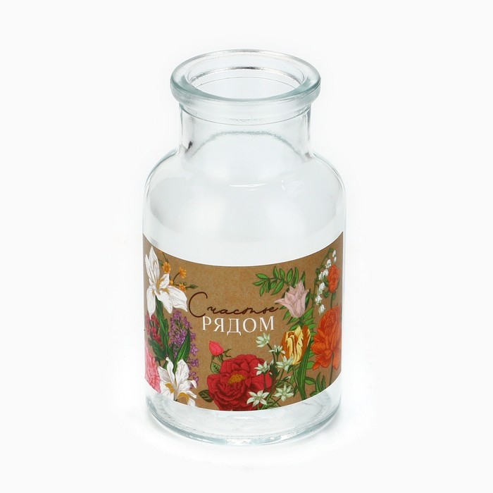 Подарочный набор: Диффузор ароматический палочки, ароматизатор для дома 30 мл. и ваза 125 мл. «Аромадиффузор: Счастье рядом», аромат цветочный.