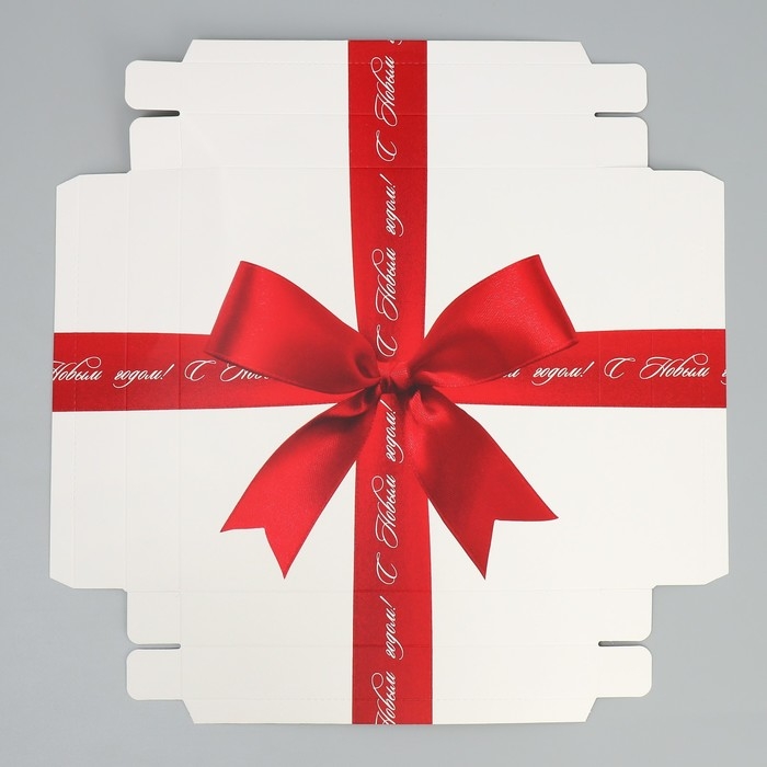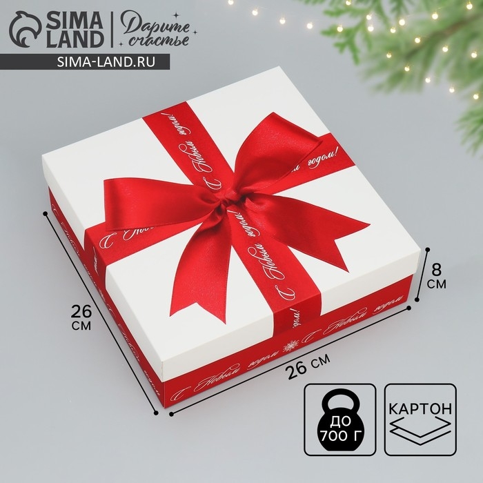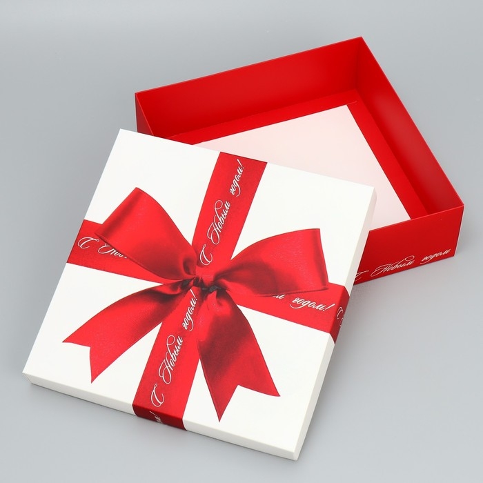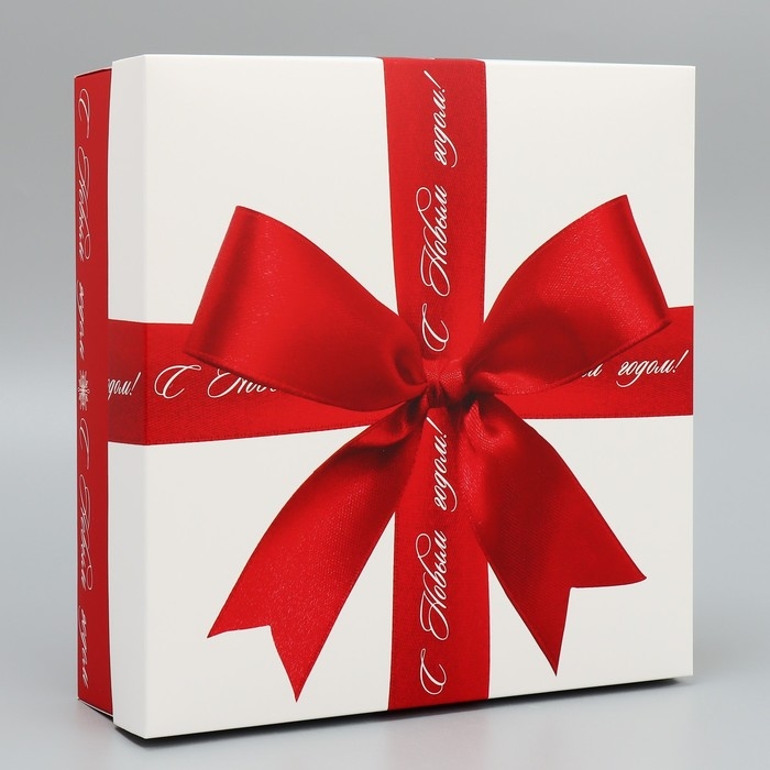 Коробка новогодняя складная «С Новым годом!», бант, 26 х 26 х 8 см, Новый год