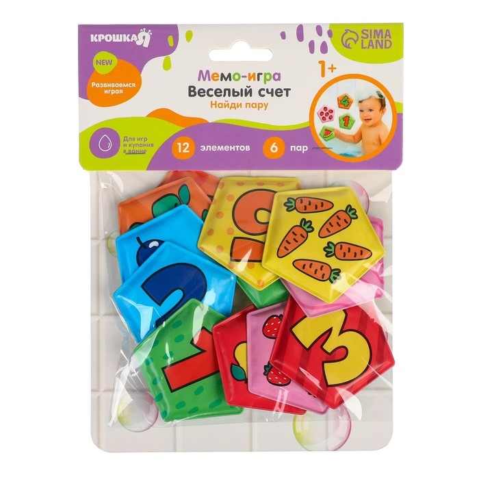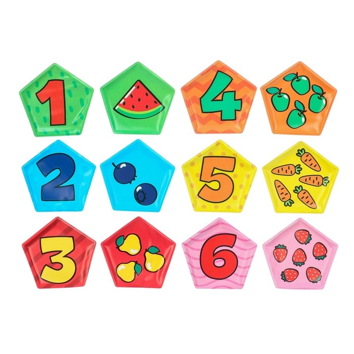 Мемо-игра: развивающие наклейки - присоски многоразовые для игры в ванной «Весёлый счёт», найди пару, 6 пар, 12 стикеров EVA, Крошка Я