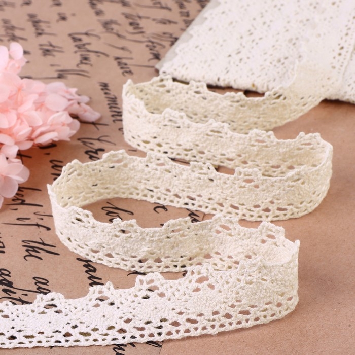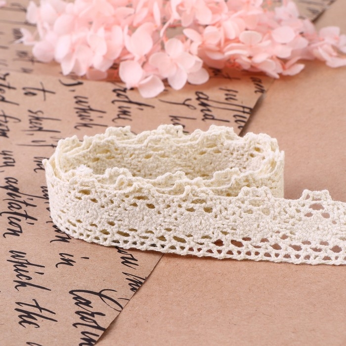 Кружево вязаное, 20 мм × 10 ± 1 м, цвет бежевый