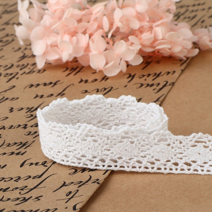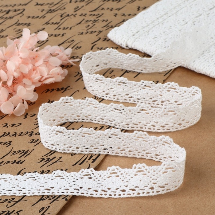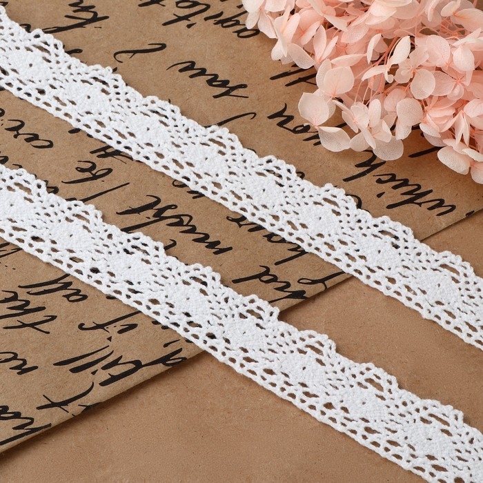 Кружево вязаное, 20 мм × 10 ± 1 м, цвет белый