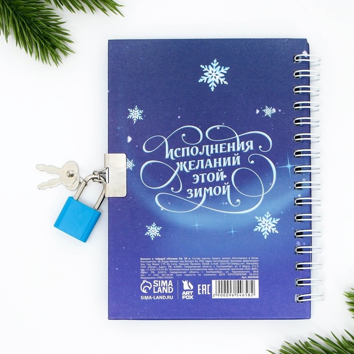 Новый год. Блокнот на замочке «Мои заветные мечты», 50 л