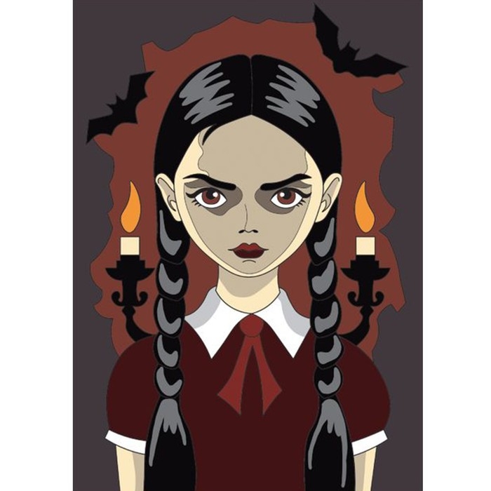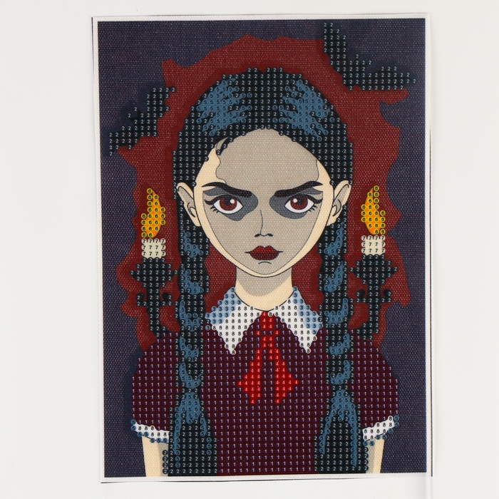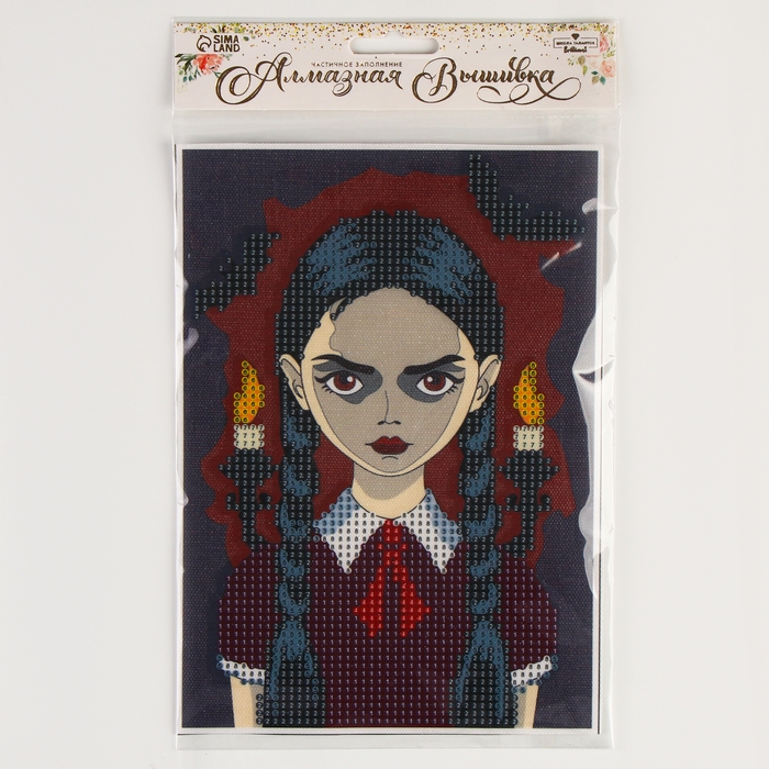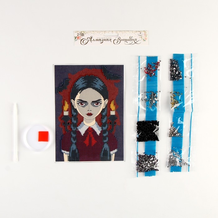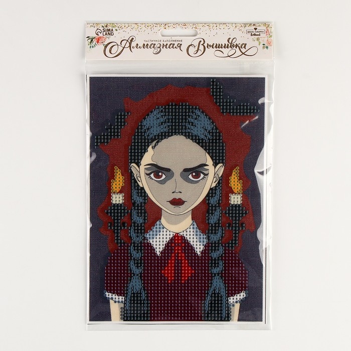 Алмазная мозаика на хеллоуин с частичным заполнением на холсте «Мрачная девочка», 15 х 21 см