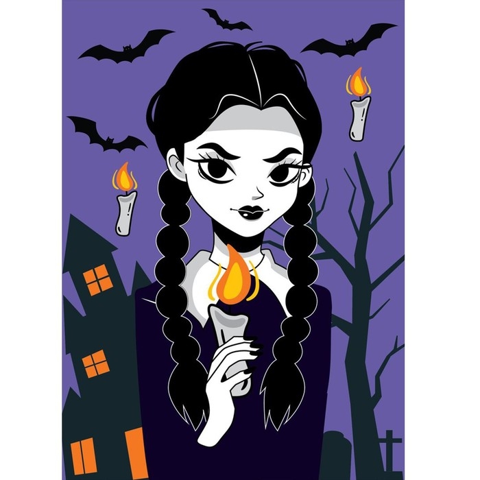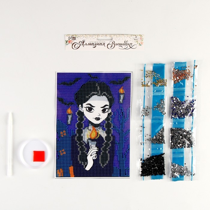 Алмазная мозаика на хеллоуин с частичным заполнением на холсте «Девочка с косичками», 15 х 21 см