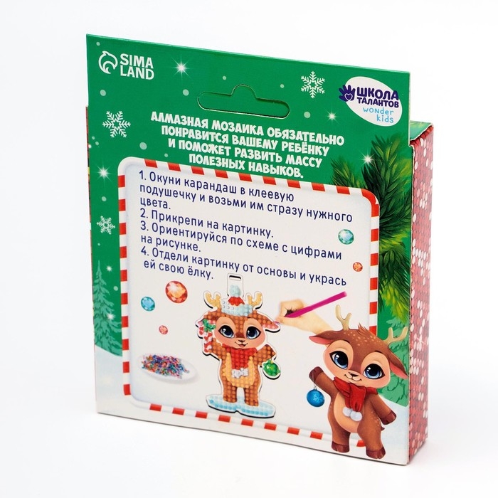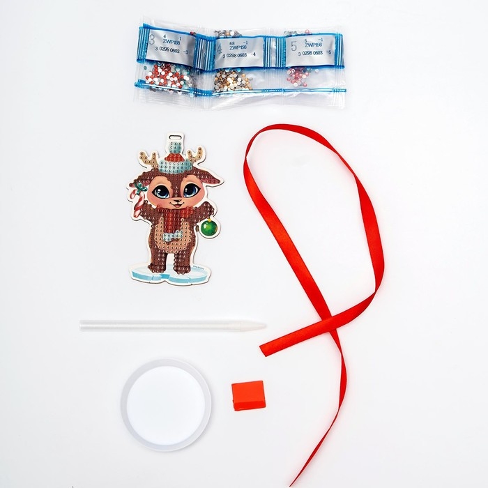 Алмазная мозаика на новый год с частичным заполнением для детей на подвеске ««Оленёнок», новогодний набор для творчества
