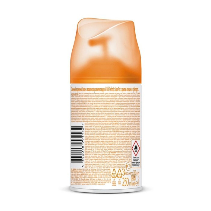 Сменный баллон для автоматического аэрозольного освежителя воздуха. Просто вставьте аэрозоль в держатель, и Air Wick Freshmatic будет автоматически распылять свежий и легкий аромат в Вашем доме, радуя вас и ваших близких. Основные характеристики: избавляет от неприятных запахов и наполняет ваш дом приятным ароматом, три режима интенсивности распыления аромата, до 60 дней свежести, 1 спрей освежает целую комнату, удобно вешать на стену, размещать на полке или ставить на шкаф, многослойный аромат.