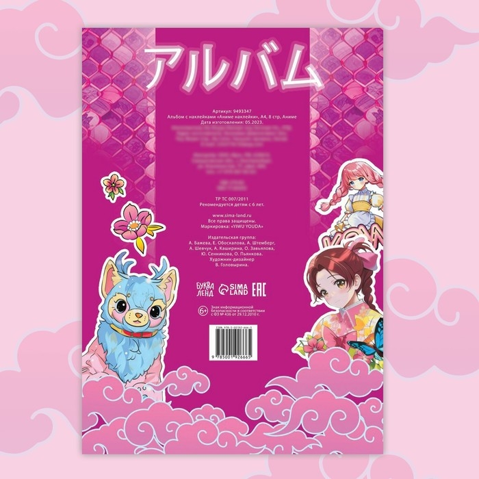 Альбом с наклейками «Аниме наклейки», А4, 8 стр., Аниме