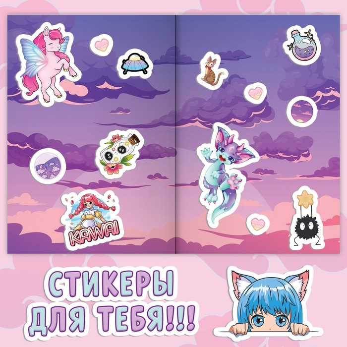 Окунитесь в яркий и чарующий мир аниме вместе с нашими наклейками! Внутри вы найдёте более 200 классных стикеров: уникальные персонажи, забавные фразочки и элементы японского декора! В книжке есть красочные фоны, на которых можно создавать целые композиции из наклеек. Не упустите возможность украсить всё вокруг красочными стикерами!