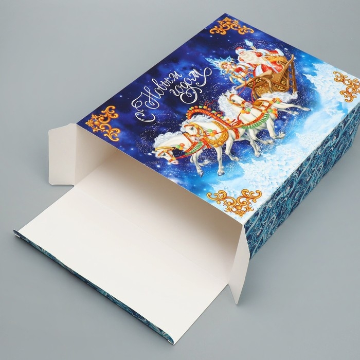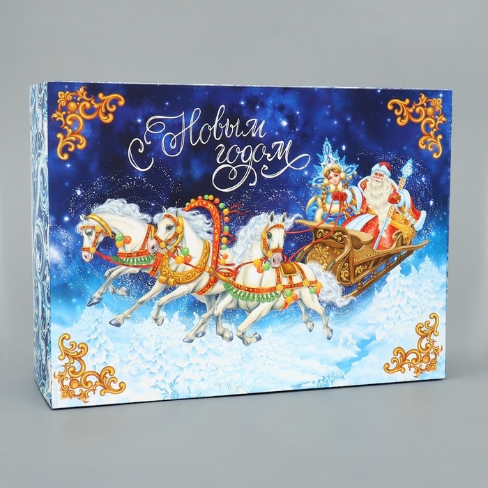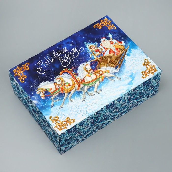Коробка подарочная новогодняя складная «Тройка лошадей», 22 х 30 х 10, Новый год