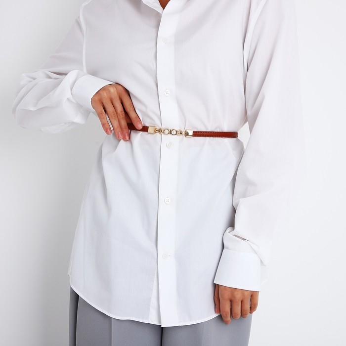 Ремень женский, ширина 1 см, пряжка металл, цвет рыжий