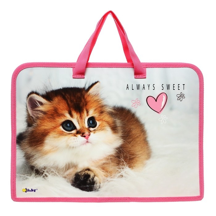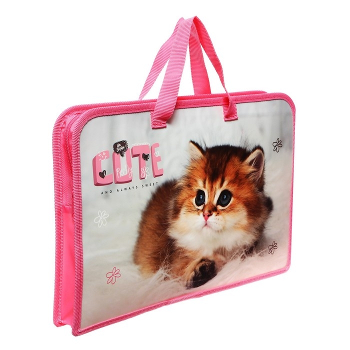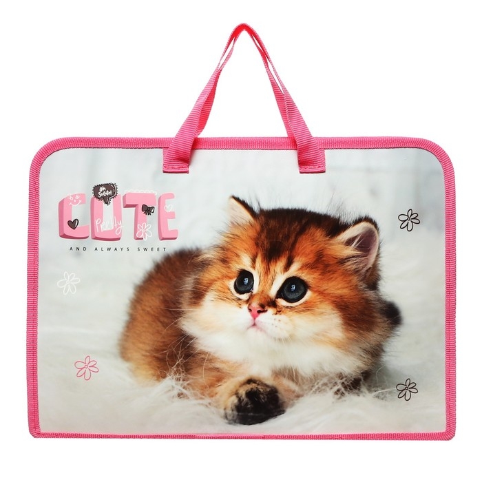 Папка с ручками А4, 340 х 245 х 40 мм, пластиковая, ручки-тесьма, Оникс ПТ-14 Cute kitty