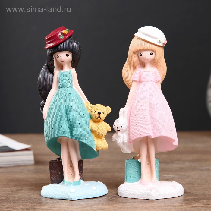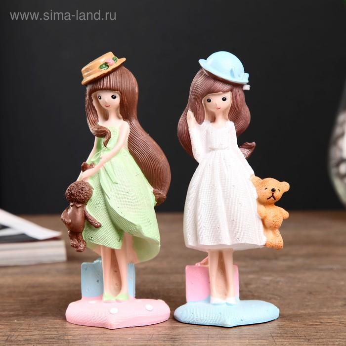 Сувенир полистоун "Малышка в шляпке и игрушкой в руке" МИКС 14х5,5х4,5 см