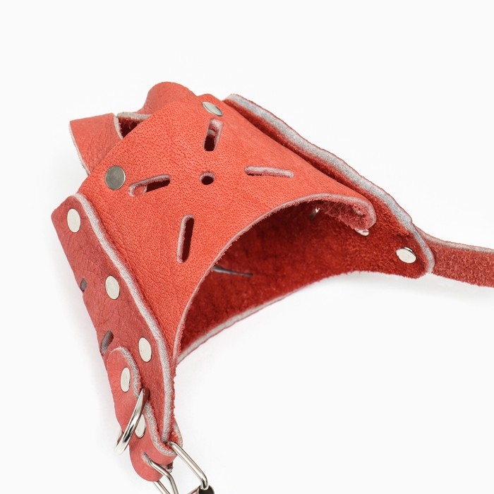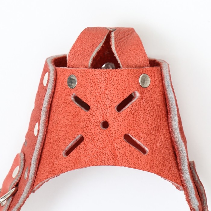 Намордник изготовлен из мягкой кожи, что обеспечивает прочность и долговечность изделия. Этот материал также легко чистится и устойчив к износу.