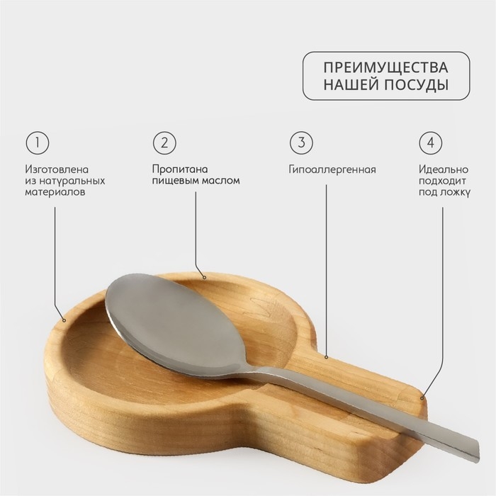 Подставка деревянная под ложку Adelica, 15×10×1,7 см, берёза