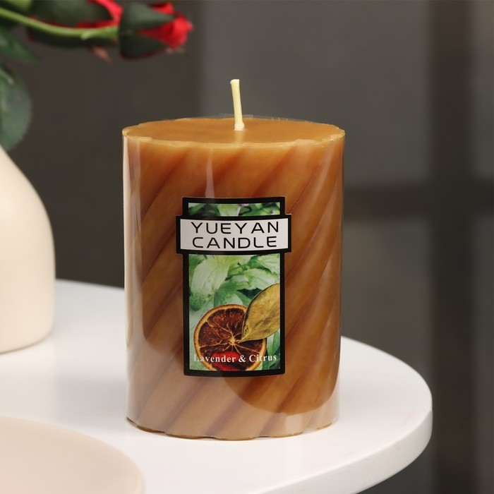 Свеча-цилиндр ароматическая витая "Лаванда и цитрус", 7,5х10 см