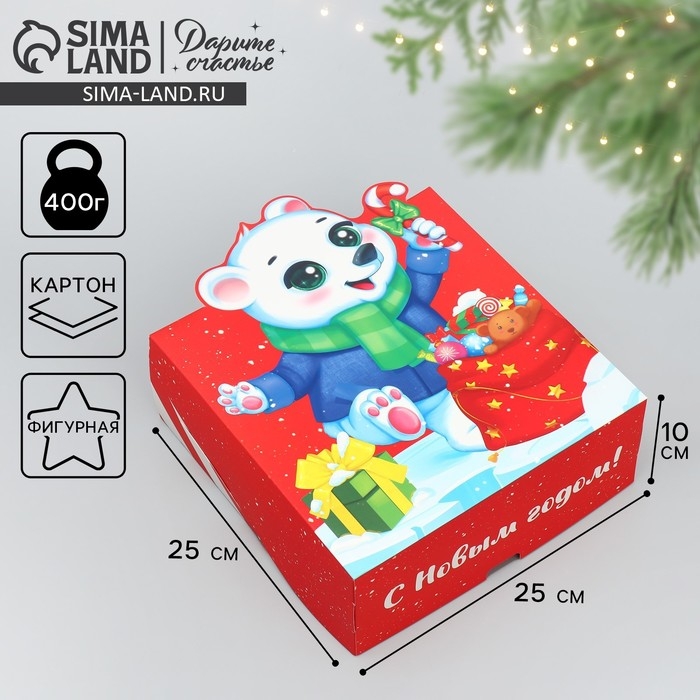 Коробка подарочная новогодняя складная «С Новым годом!», белый мишка, 25 х 25 х 10 см, Новый год