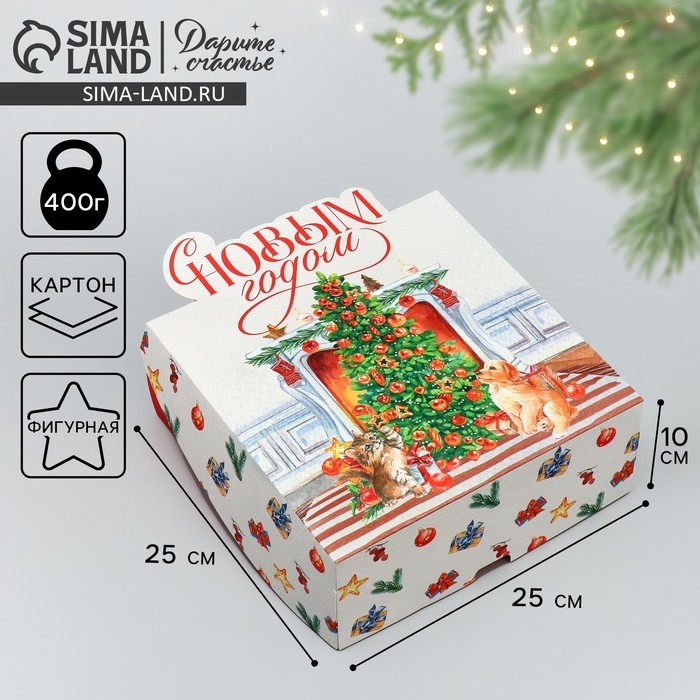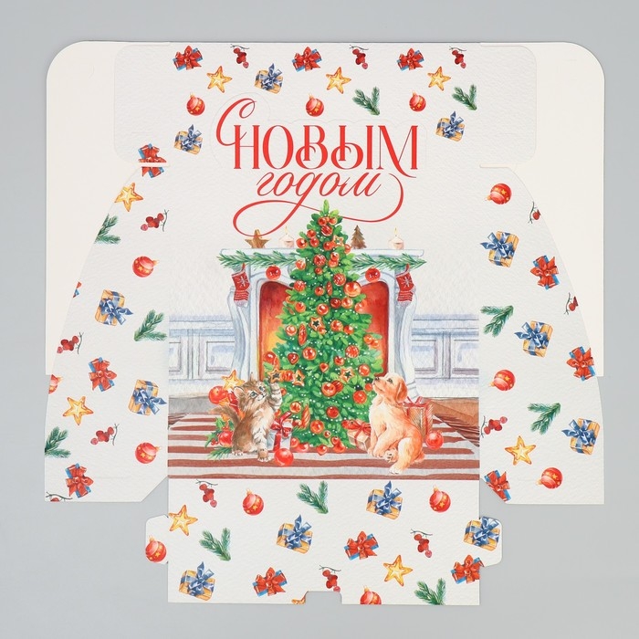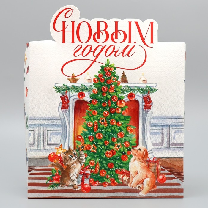 Подарочная коробка новогодняя складная «С Новым годом», камин, 25 х 25 х 10 см, Новый год