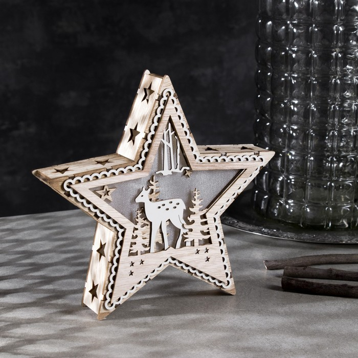 Светодиодная фигура «Звезда с оленем» 21 × 21 × 5 см, дерево, батарейки АААх2 (не в комплекте), свечение тёплое белое