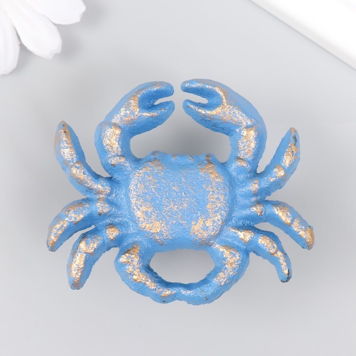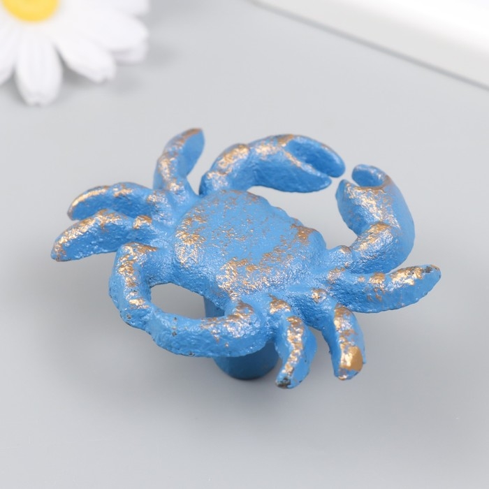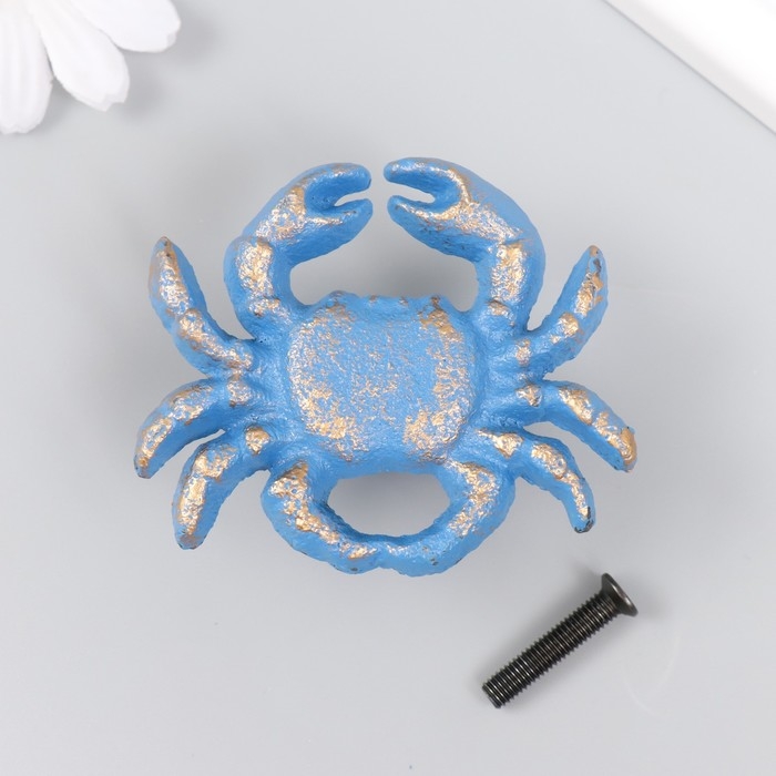 Ручка дверная чугун "Крабик" голубая с патиной 5,8х7 см