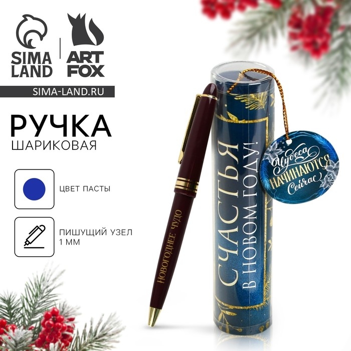 Новый год. Ручка в тубусе шариковая «Счастья в Новом году!», пластик