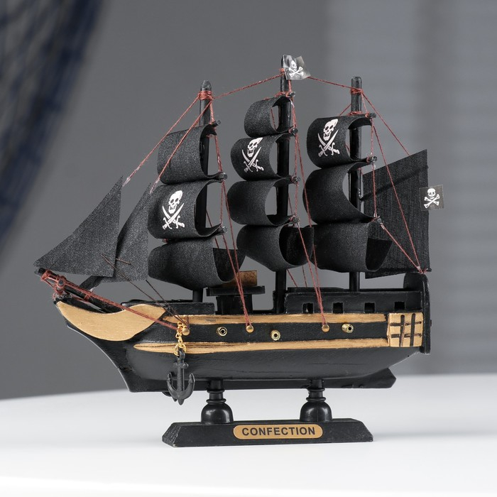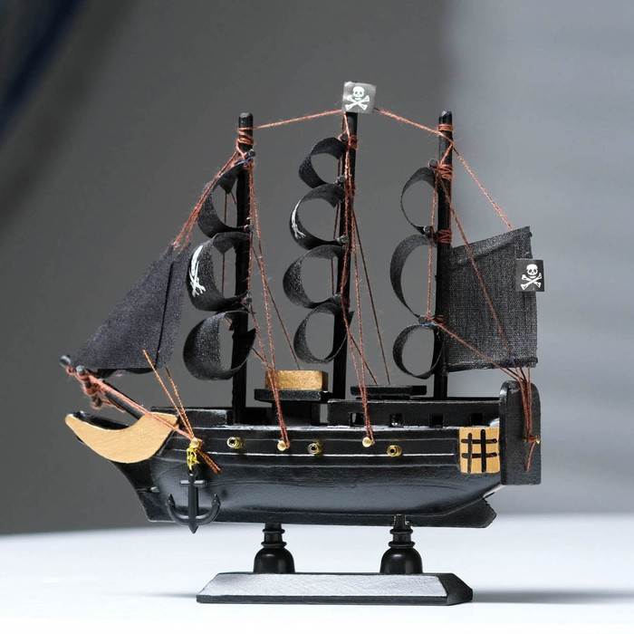 Корабль пиратский шестипушечный «Гангут», черные паруса,16х4х15.5см