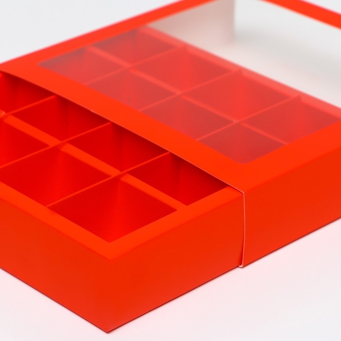 Упаковка для конфет 9 шт,14,5 х 14,5 х 3,5 см, красный