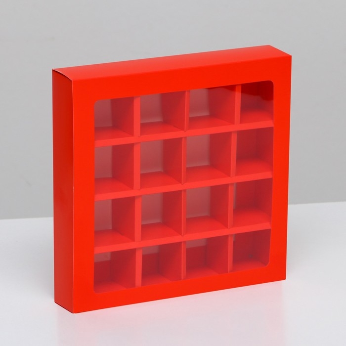 Коробка для 16 конфет, красная , 17,7 х 17,7 х 3,8 см. Кондитерская упаковка