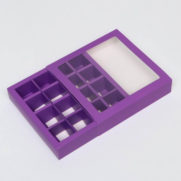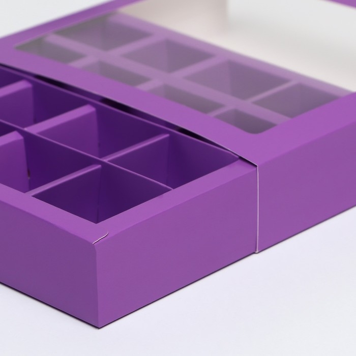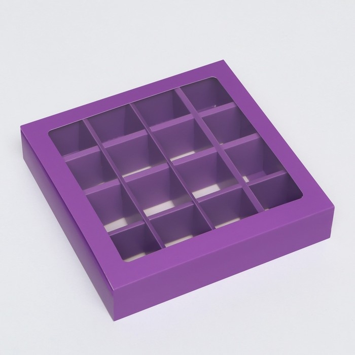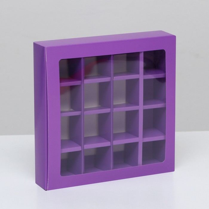 Коробка для 16 конфет, сиреневая, 17,7 х 17,7 х 3,8 см. Кондитерская упаковка