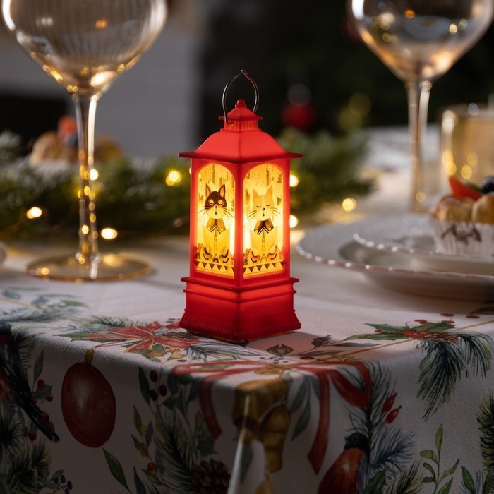 Светодиодная фигура «Красный фонарь с котиками» 5 × 12 × 5 см, пластик, батарейки AG13х3 (в комплекте), свечение тёплое белое
