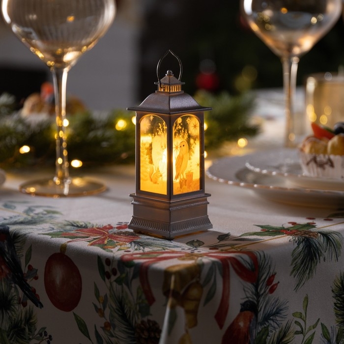 Светодиодная фигура «Серебристый фонарь с совой» 5 × 12 × 5 см, пластик, батарейки AG13х3 (в комплекте), свечение тёплое белое